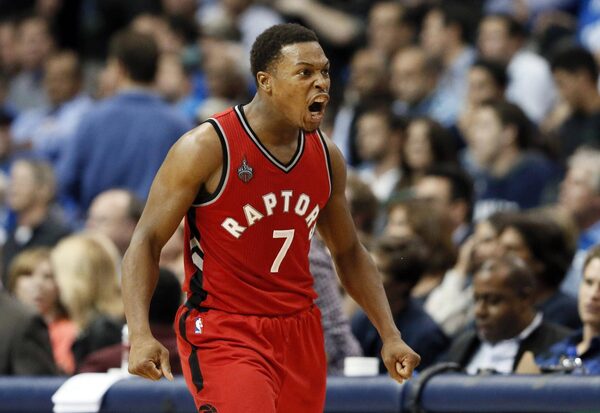 Toronto Raptors guard Kyle Lowry (7) celebrates scoring a basket against the Dallas Mavericks late in the second half of an NBA basketball game Tuesday, Nov. 3, 2015, in Dallas.Tony Gutierrez/The Associated Press