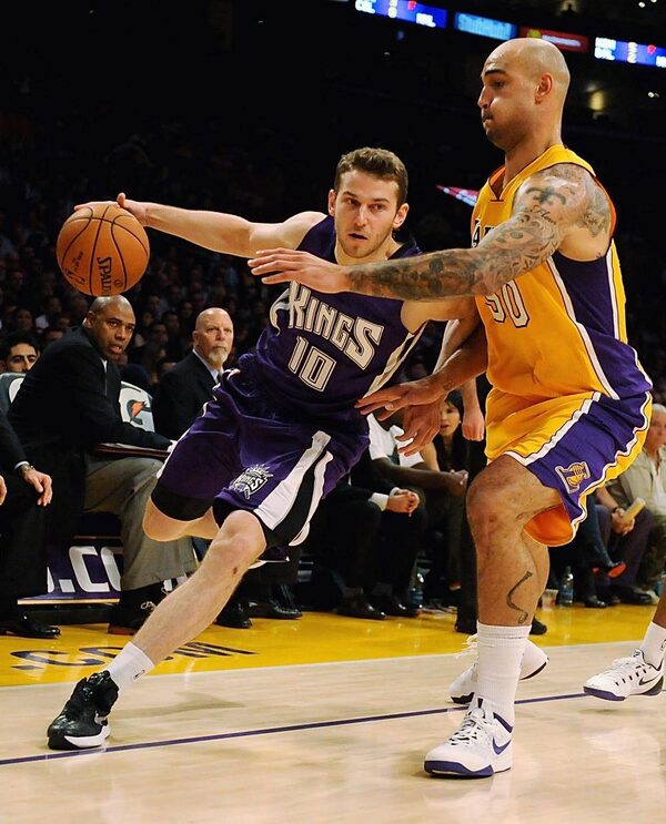 The Sacramento Kings’ Nik Stauskas, left,Jonathan Moore/Getty Images