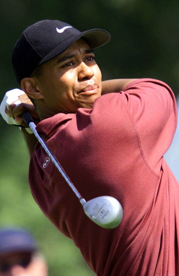 Tiger Woods of the USA tees off during the final round of the Dubai Desert Classic tournament at the Emirates Golf Club March 4, 2001.