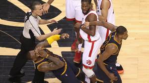 Both sides were complaining about the officiating in Game 3. Dahntay Jones, the Cavaliers guard, was suspended for one game for hitting Biyombo below the belt near the end of the contest Saturday.