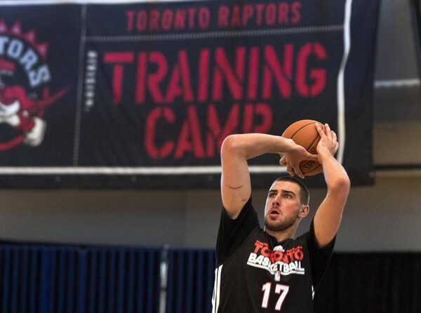 Toronto Raptors Jonas Valanciunas shoots baskets during training camp in Halifax, N.S., on Friday, Oct. 5, 2012.Andrew Vaughan/The Canadian Press
