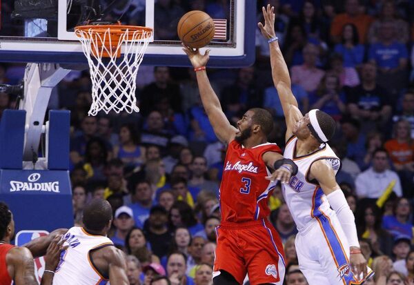 Los Angeles Clippers guard Chris Paul goes to the basket in front of Oklahoma City Thunder guard Russell WestbrookAlonzo Adams/The Associated Press