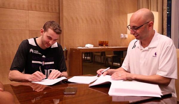Nik Stauskas signs his NBA rookie contract with the Sacramento Kings