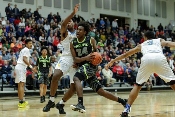 Prolific Prep’s Abu Kigab drives hard into the lane during a game against the Huntington Prep Fighting Irish in January.Adam Lacy/The Associated Press