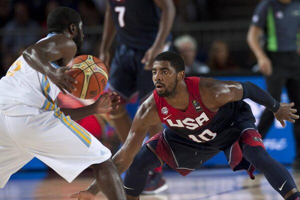 Kyrie Irving of the US tries to block Ukraine's Eugene ‘Pooh’ JeterAlvaro Barrientos/The Associated Press