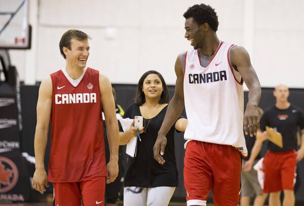 Andrew Wiggins, right, and Brady Heslip joke around during the Canadian men’s national basketball team training camp in Toronto on August 17.Mark Blinch/The Globe and Mail