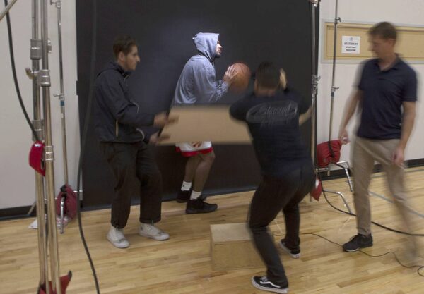 Toronto Raptors' Corey Joseph uses his phone between photo shoots.Chris Young/The Canadian Press