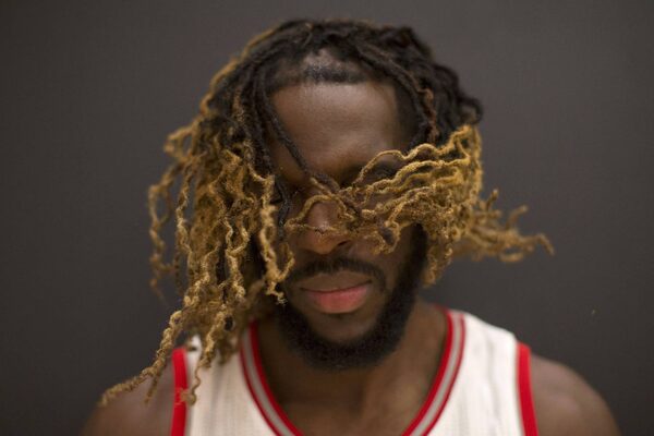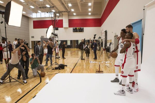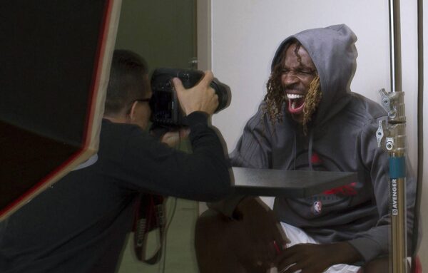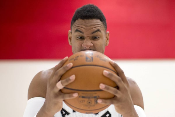 Toronto Raptors' DeMarre Carroll flicks up his hair as he poses for a photo shoot.Chris Young/The Canadian Press