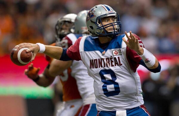 Montreal Alouettes' quarterback Josh Neiswander passes against the B.C. Lions during the second half of a CFL football game in Vancouver, on Sunday September 15, 2013.DARRYL DYCK/The Canadian Press