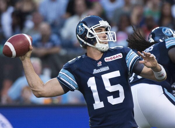 Toronto Argonauts quarterback Ricky Ray saw his first action of the season Friday night in Hamilton, replacing Trevor Harris in the second half of Toronto’s lopsided 34-2 loss to the Montreal Alouettes.Nathan Denette/The Canadian Press