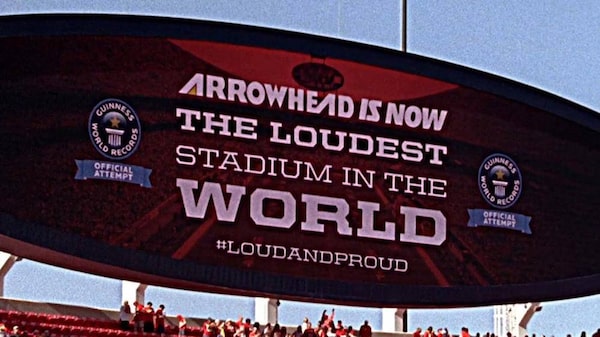 Scoreboard sign proclaims Arrowhead Stadium the loudest in the world last October