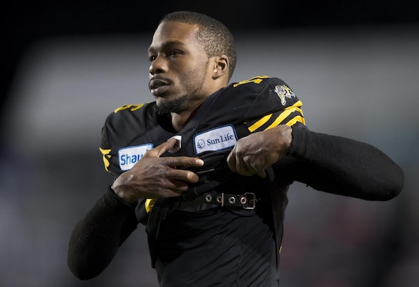 Hamilton Tiger-Cats' Brandon Banks leaves the field after being injured during the second half of the 107th Grey Cup against the Winnipeg Blue Bombers in Calgary, Alta., on Nov. 24, 2019.The Canadian Press