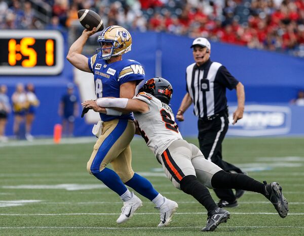 After the Bombers punted on their first series, they were called for no yards and B.C. started their second drive on Winnipeg’s 35-yard line.