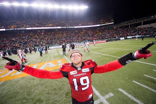 Calgary Stampeders quarterback Bo Levi Mitchell celebrates his team's win over the Ottawa Redblacks in the 106th Grey Cup in Edmonton on Nov. 25, 2018.Nathan Denette/The Canadian Press