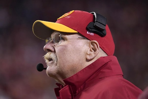 Kansas City Chiefs head coach Andy Reid watches from the sidelines during the second half of an NFL football game against the Buffalo Bills on Dec. 10, 2023, in Kansas City, Mo.Ed Zurga/The Associated Press