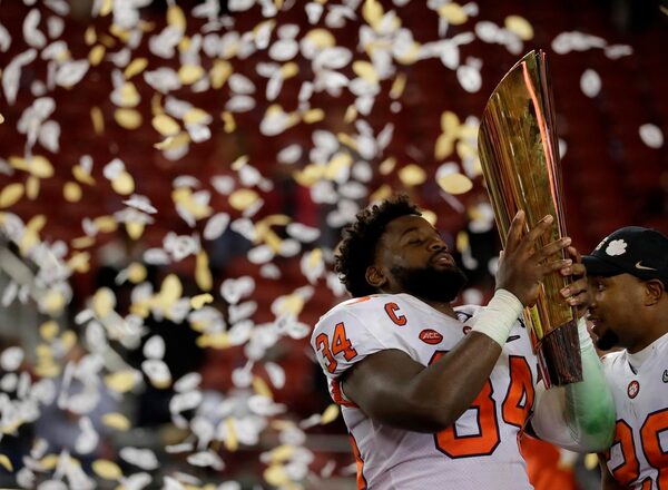 Clemson's Kendall Joseph celebrates after the NCAA college football playoff championship game against Alabama on Jan. 7, 2019, in Santa Clara, Calif.The Associated Press