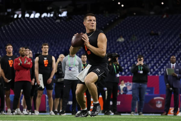 Diego Pavia of the Vanderbilt Commodores throws a pass during the 2026 NFL Scouting Combine at Lucas Oil Stadium in February in Indianapolis, Ind.Stacy Revere/Getty Images