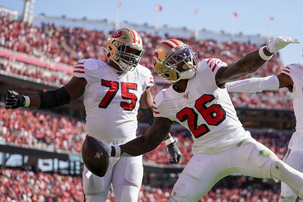 Coming off a 9-0 shutout of the Washington Redskins, the 49ers’ defense sacked Kyle Allen seven times and forced three interceptions while limiting the Carolina offense to 230 total yards. Allen entered with no interceptions while going 4-0 in four starts this season.