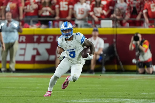 Detroit Lions running back David Montgomery runs the ball during a game against the Kansas City Chiefs on Sunday in Kansas City, Mo.Charlie Riedel/The Associated Press