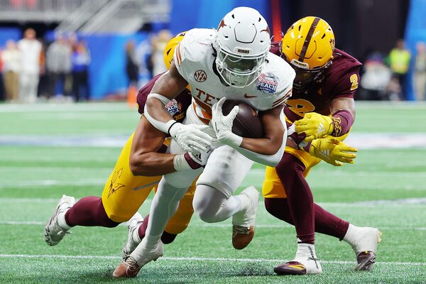 Texas avoided the first big upset of the College Football Playoff, hitting a fourth-and-long touchdown pass to keep the game going and beating Arizona State 39-31 in double overtime when an interception by Andrew Mukuba finally ended a Peach Bowl quarter-final classic Wednesday. Cam Skattebo led the Sun Devils back from a 16-point deficit in the fourth quarter and put his team ahead for the first time all day with a three-yard touchdown run to start overtime against No. 4 Texas (13-2). No. 10 Arizona State – a two-touchdown underdog – was on the verge of winning when Texas faced fourth-and-13 on its first overtime possession. But Quinn Ewers found Matthew Golden breaking free behind two defenders to haul in a 28-yard touchdown. After moving to the opposite end of Mercedes-Benz Stadium, Ewers threw a 25-yard touchdown pass to Gunnar Helms on the very next play, followed by a two-point conversion pass to Golden. The Longhorns finally put Arizona State (11-3) away when Mukuba picked off Sam Leavitt’s pass at the three to end the game. Arizona State finished with 510 yards to 375 for the Longhorns.