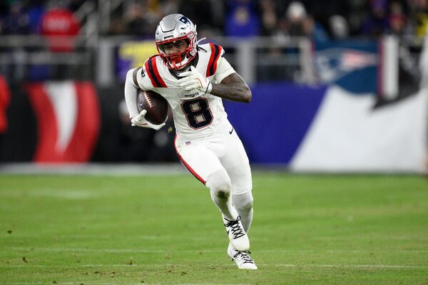 New England Patriots wide receiver Stefon Diggs (8) in action during his team's game against the Baltimore Ravens this past Sunday in Baltimore.Nick Wass/The Associated Press