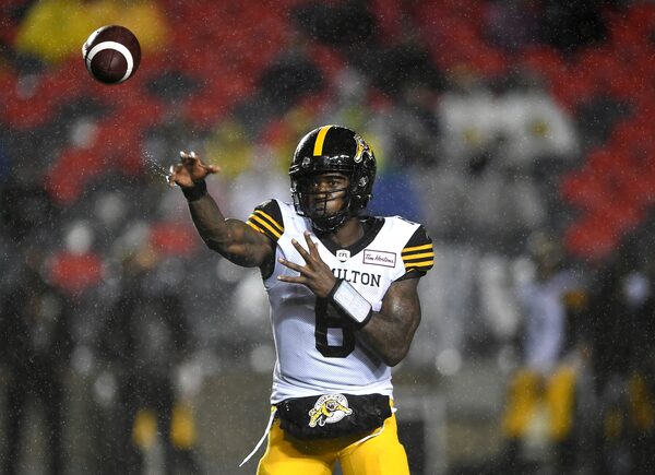 Hamilton Tiger-Cats quarterback David Watford throws the ball against the Ottawa Redblacks during the first half in Ottawa on Sept. 22, 2021. The Tiger-Cats beat the Redblacks 24-7.Justin Tang/The Canadian Press