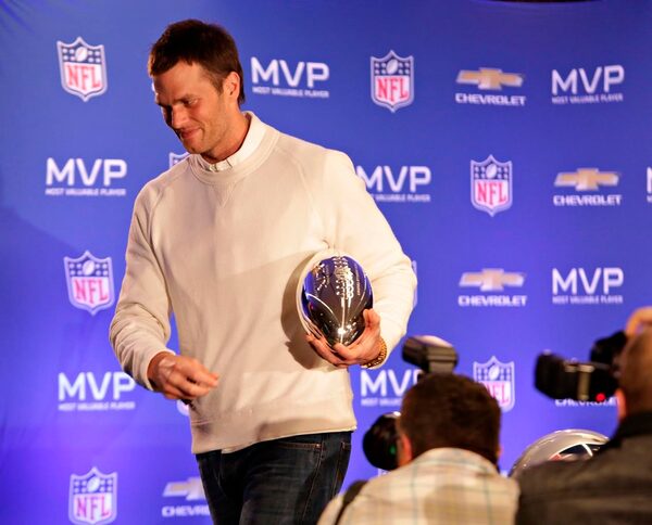 In this Feb. 2, 2015, file photo, New England Patriots quarterback Tom Brady leaves a news conference with his MVP trophy from Super Bowl XLIX, in Phoenix.John Samora/The Associated Press