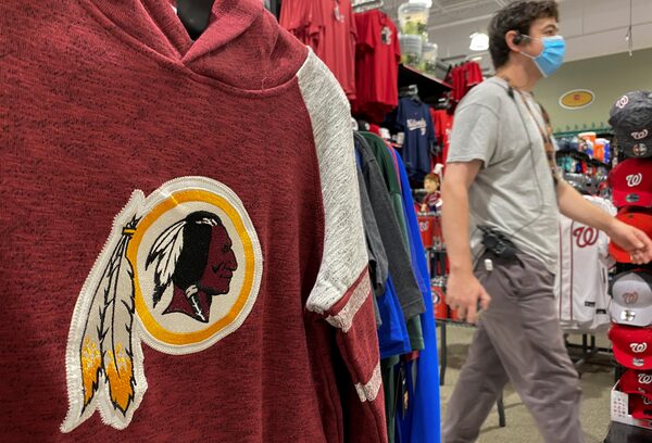An employee passes a Washington Redskins shirt at a sporting goods store in Bailey's Crossroads, Va., on June 24, 2020.KEVIN LAMARQUE/Reuters
