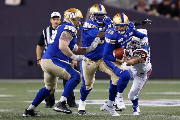 The victory in front of 24,349 fans at Investors Group Field upped Winnipeg’s record to 6-7, while the Alouettes moved into double digits for losses at 3-10.
