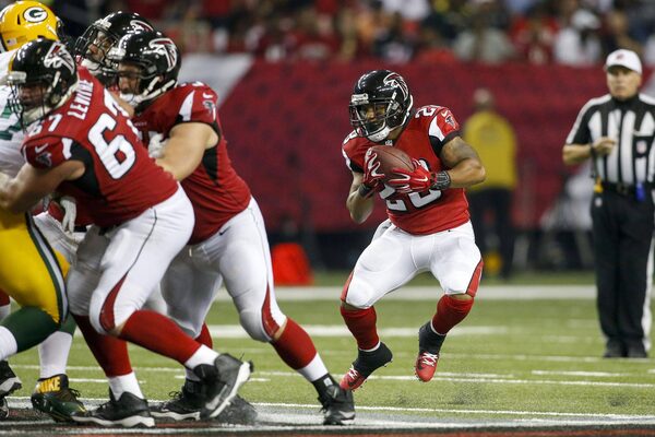 Atlanta Falcons running back Terron Ward runs the ball against the Green Bay Packers on Oct. 30, 2016.Brett Davis