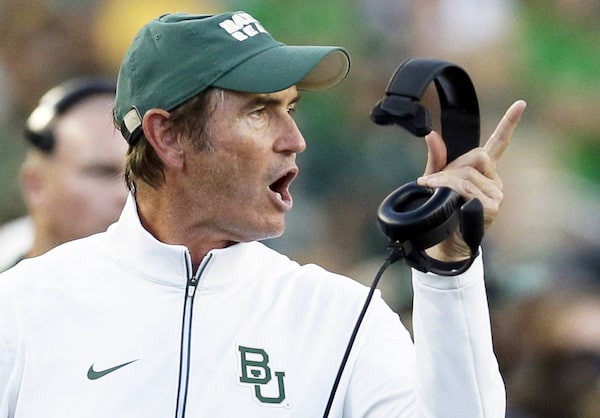 Former Baylor coach Art Briles yells from the sideline during the first half of an NCAA college football game against Lamar in Waco, Tex., in 2015.LM Otero/The Associated Press
