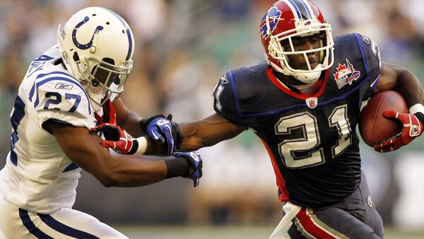 Buffalo Bills running back C.J. Spiller (21) rushes past Indianapolis Colts' Jacob Lacey (27) in the first quarter of a preseason NFL football game in Toronto on Thursday, Aug. 19, 2010. (AP Photo/Mike Groll)Michael Groll/The Associated Press