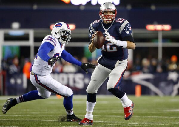 Buffalo Bills defensive end Mario Williams attempts to tackle New England Patriots quarterback Tom Brady during the first half of a Nov. 23 game at Gillette Stadium in Foxborough, Mass.Winslow Townson