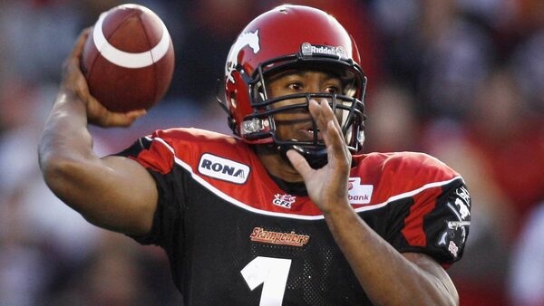 Calgary Stampeders' quarterback Henry Burris makes a pass during second half CFL football action against the Edmonton Eskimos in Calgary, Monday, Sept. 7, 2009. The Calgary Stampeders beat the Edmonton Eskimos 32-8.THE CANADIAN PRESS/Jeff McIntoshJeff McIntosh/The Canadian Press