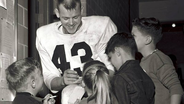 Mr. Harris proved to be a formidable talent. He played two ways, linebacker on defence, centre on offence, and was named an All-American at both positions. His hits were so loud that the Arkansas fans nicknamed him Thumper, and in 1961 he was offered a contract by the AFL's Boston Patriots and the CFL's Stampeders. Wanting a smaller city to live in, he chose Calgary – then got right to work dismantling offences in a most respectful manner.