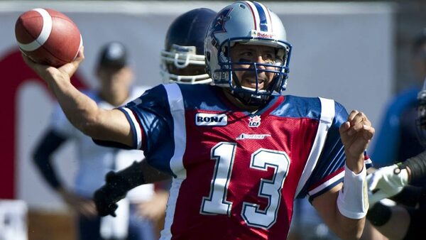 Montreal Alouettes quarterback Anthony Calvillo fires a pass against the Toronto Argonauts.Paul Chiasson/The Canadian Press