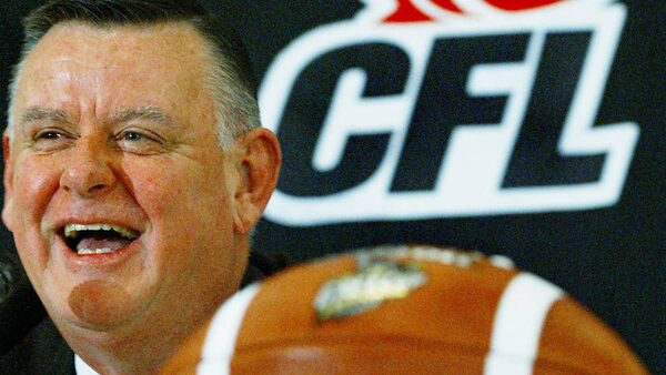 Canadian Football League interim commissioner David Braley laughs at a question during a news conference in Edmonton Friday, November 22, 2002. (CP PHOTO/Kevin Frayer)KEVIN FRAYER/The Canadian Press