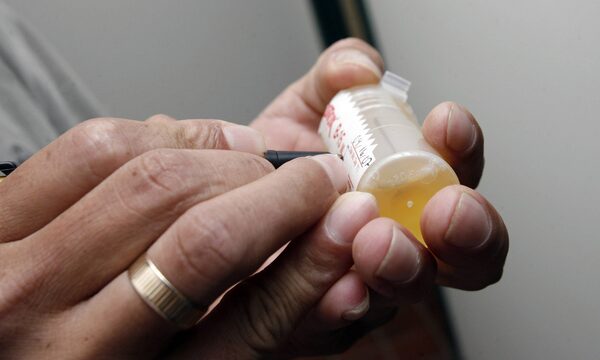 Technician labels a urine sample for drug testingThe Associated Press