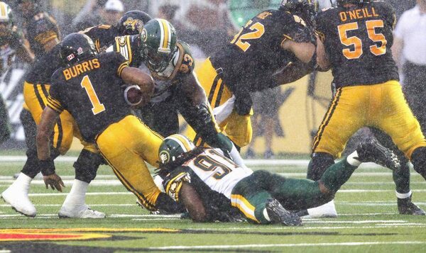 Edmonton improved to 1-1 after a 39-18 loss to Saskatchewan last week. After putting up 34 points in last week's 39-34 loss to Toronto, the Ticats (0-2) could only muster 20 points in the weather.