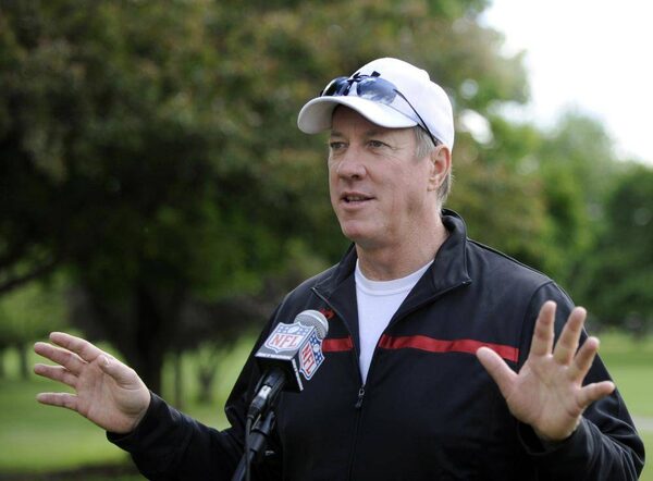 FILE - In this June 3, 2013 file photo, Buffalo Bills Hall of Fame quarterback Jim Kelly talks with the media before a press conference in Batavia, N.Y.Gary Wiepert/The Associated Press