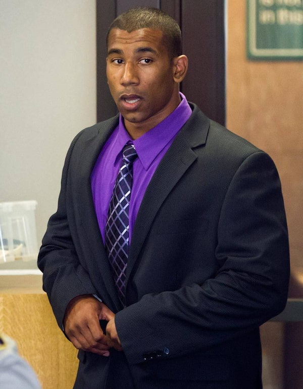 The former CFL wide receiver was convicted in December of two counts of sexual assault and one count each of obstruction of justice and assault on a police officer dating back to 2009.
