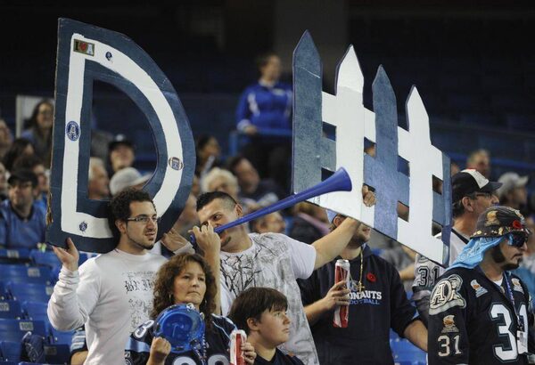 Toronto Argonaut fans at the Rogers Centre. Should the Muskegon, Mich., native crack the CFL club’s roster, family and friends could easily drive to Rogers Centre or Hamilton’s Tim Hortons Field to watch him play.Fred Lum/The Globe and Mail
