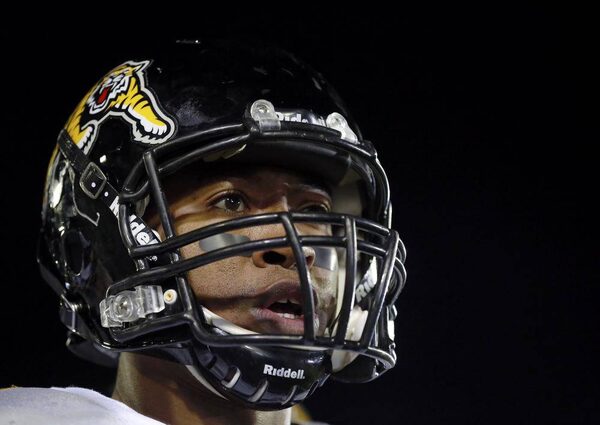 Hamilton Tiger-Cats quarterback Henry Burris waits to get back on the field against the Saskatchewan Roughriders during the second half of the CFL's 101st Grey Cup championship football game in Regina, Saskatchewan November 24, 2013. Burris, who becomes a free-agent this summer, says he wants to stay in Hamilton.MARK BLINCH/Reuters