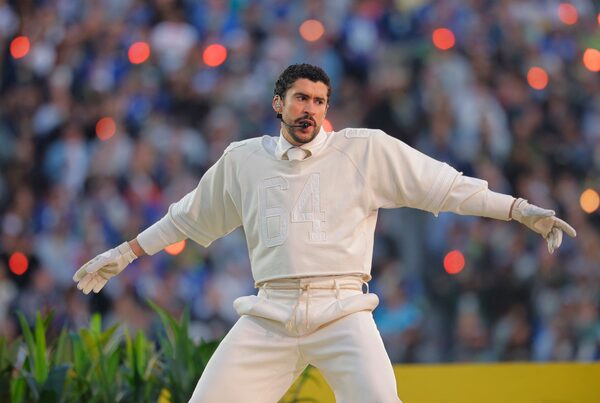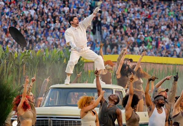 Bad Bunny performs during halftime of the NFL Super Bowl 60 football game between the New England Patriots and the Seattle Seahawks, Sunday, Feb. 8, 2026, in Santa Clara, Calif.Charlie Riedel