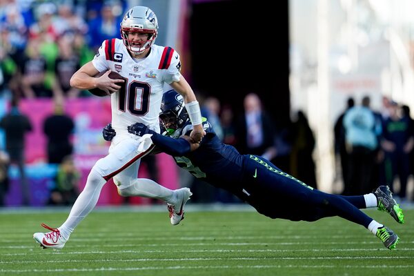 Maye runs with the ball as the Seahawks safety Nick Emmanwori defends.Sue Ogrocki/The Associated Press