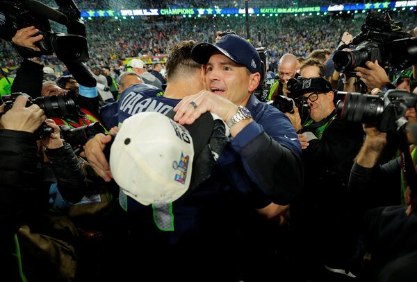 Seahawks head coach Mike Macdonald and Darnold celebrate after winning Super Bowl LX.Mike Blake/Reuters