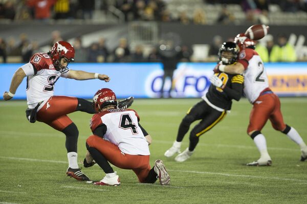 Calgary took the 14-13 lead into the fourth quarter with the wind at their back. A bobbled snap on Paredes' 43-yard failed field-goal attempt 36 seconds in was recovered by Hamilton's Brandon Stewart to save three points. But on Calgary's next possession, Paredes made a 29-yarder to give the Stamps a 17-13 lead.