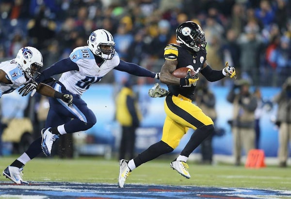 Roethlisberger had never beaten the Titans at LP Field, missing the Steelers' win here in 2010. With Bell running through and over the Titans, the Steelers took the pressure off Big Ben by holding the ball for 39 minutes, 49 seconds with a 386-312 edge in total offence.