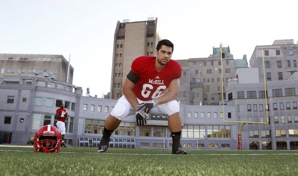 His school obligations and loyalty to the family business limited him to one practice per week at McGill, along with the day-before walk-throughs. That irked some teammates and coaches early on. He showed promise on the defensive line, but once they moved him to offence, he elevated into a fast-thinking and agile powerhouse – one coaches believed could star in the CFL someday. So they lived with his absences.
