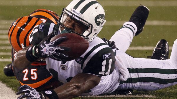 Cincinnati Bengals cornerback Morgan Trent (25) gets to New York Jets wide receiver Jeremy Kerley (11) as he tries to make the catch at the New York Jets vs Cincinnati Bengals in a preseason game at the New Meadowlands Stadium. The Jets won 27-7. William Perlman/ US PRESSWIREThe Star-Ledger-US PRESSWIRE